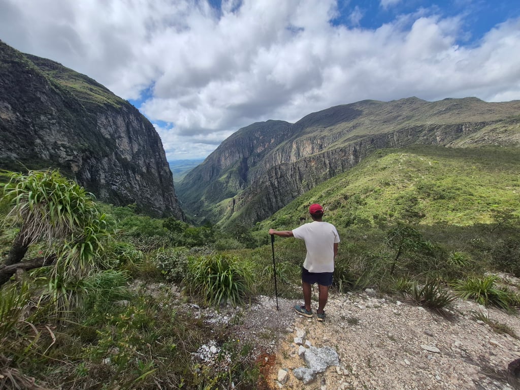 Cada passo aproxima você de um dos pontos mais impressionantes da região: o Travessão, um mirante natural que entrega uma sensação única de amplitude e liberdade. No retorno, a experiência se aprofunda com paradas especiais, como a Lapa dos Veados, com suas pinturas rupestres, e a Cachoeira dos Espelhos, perfeita para um momento de descanso e conexão.