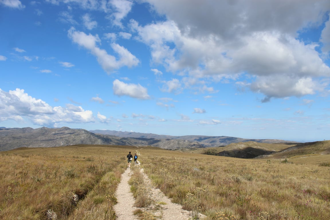 Trilha desafiadora até o Travessão, revelando paisagens imponentes da Serra do Cipó em uma experiência intensa de conexão com a natureza.